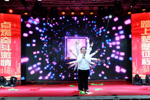 在聯(lián)歡會的現(xiàn)場,華麗舞臺燈光璀璨,背景制作喜氣祥和,一派喜迎新春的美好盛況,那一首首悅耳動聽的歌曲,那一段段優(yōu)美豪放的舞蹈,那一個個風趣搞笑的互動小品.......在舞臺上傾情巨獻,精彩紛呈,掌聲與喝彩此起彼伏,現(xiàn)場氣氛熱烈、喜氣、祥和,凱為人的魅力與風采在這一刻光芒四射,凱為人的才藝在這一刻八仙過海?。?br />