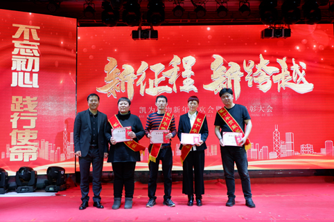 聯(lián)歡的同時進入了一年一度公司重頭戲——表彰環(huán)節(jié)。凱為過去一年的輝煌成就,離不開所有凱為人的辛勤付出。首先王總表彰了與凱為共同奮斗的十年、六年的忠誠衛(wèi)士,其次趙總表彰了各區(qū)域的銷售標兵及各部門的優(yōu)秀員工,你們是凱為的排頭兵,你們是凱為的中流砥柱,你們是最美凱為人!表彰形式花樣翻新,現(xiàn)金大紅包、歡樂砸金蛋、微信紅包雨........一份份禮品、一個個紅包、一次次表彰,都彰顯著凱為人披荊斬棘不負韶華的拼搏與奮斗!都書寫著凱為人實現(xiàn)愿景不辱使命的成就與輝煌?。?br />
