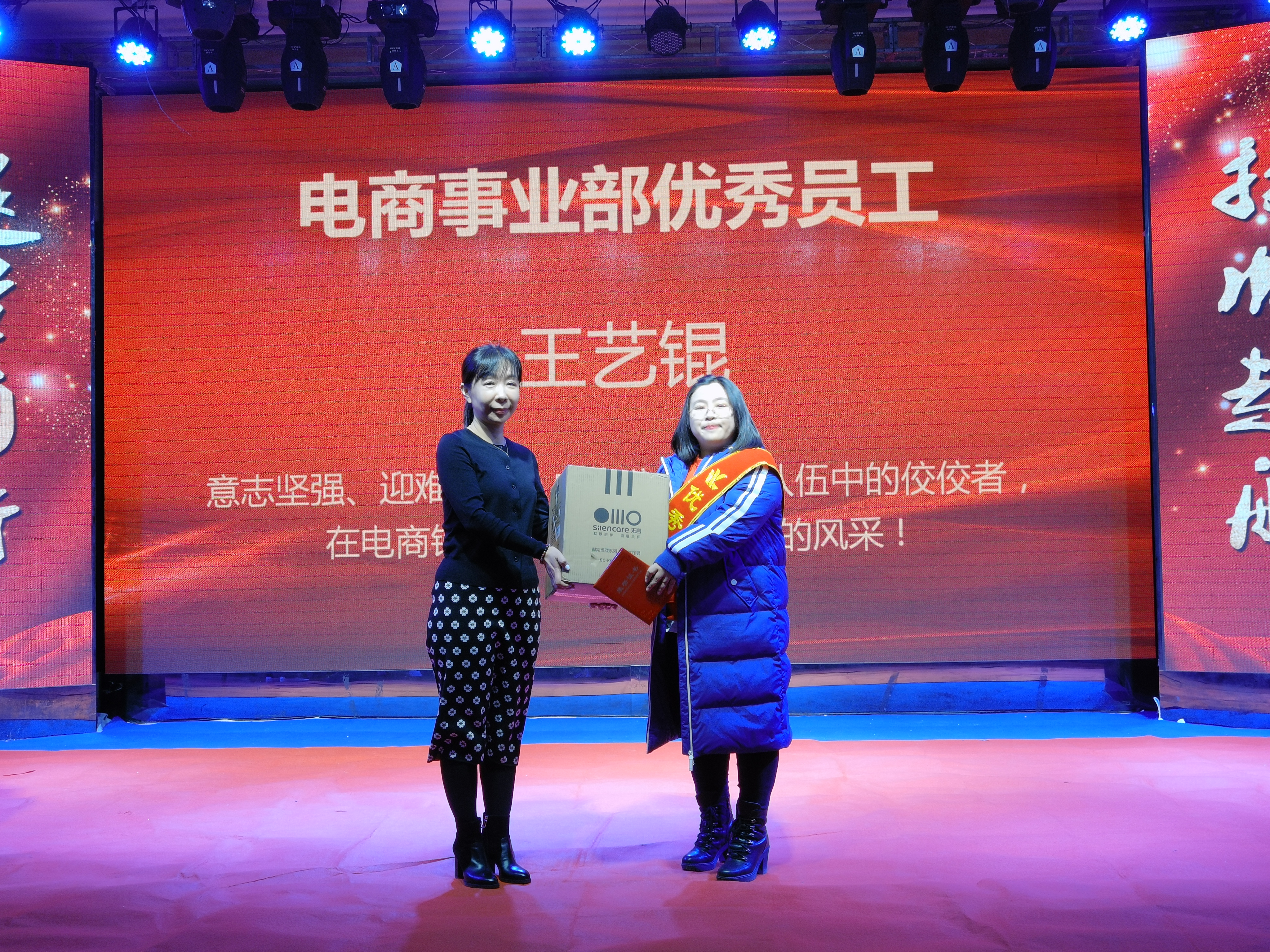 王藝錕獲得2021年度六年貢獻(xiàn)獎,她意志堅強、迎難而上,成為公司電商隊伍中的佼佼著,在電商銷售的前沿展現(xiàn)了自己的風(fēng)采,她用非凡的膽量,向我們演繹了電銷渠道的精彩。公司電商事業(yè)部總經(jīng)理于麗娜為獲獎?wù)?/span>頒獎。