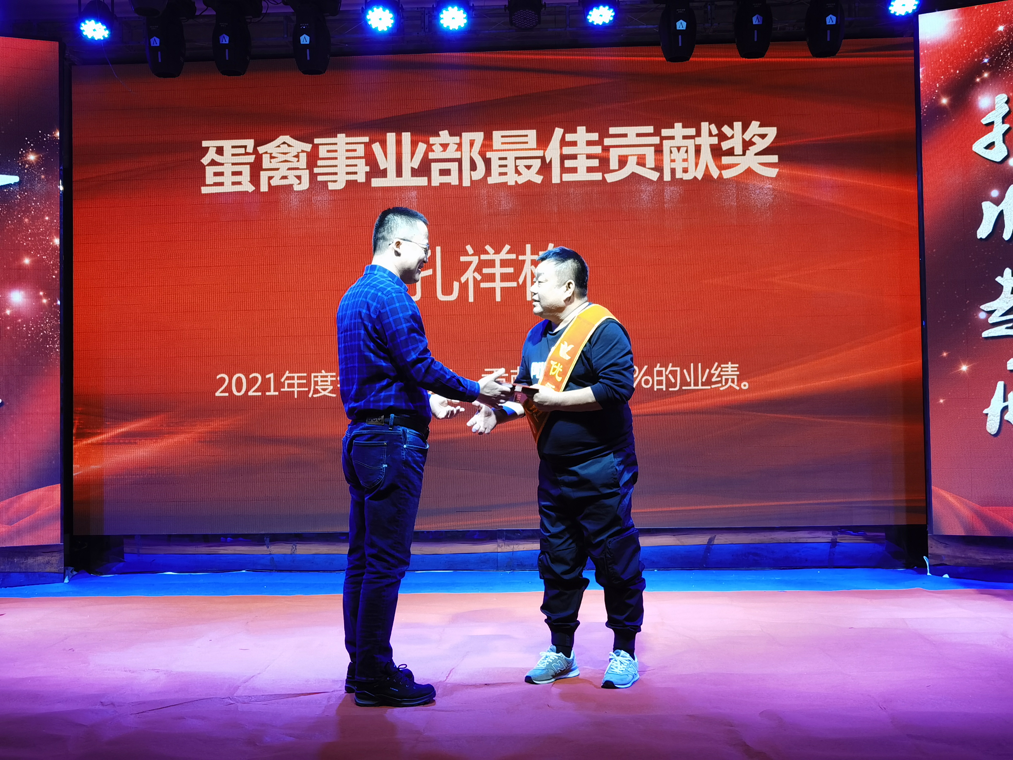 李榮久獲得年度銷售亞軍,2021年他和技術(shù)部李總服務(wù)了錦州周邊10余個大型養(yǎng)殖場,無數(shù)個星辰雨夜,多少次寒風(fēng)冷雪都有著他們的身影的穿梭。精誠所至,金石為開,他用拼搏精神再次創(chuàng)造了年度銷售的奇跡。公司總裁王鐵良為獲獎?wù)?/span>頒獎。