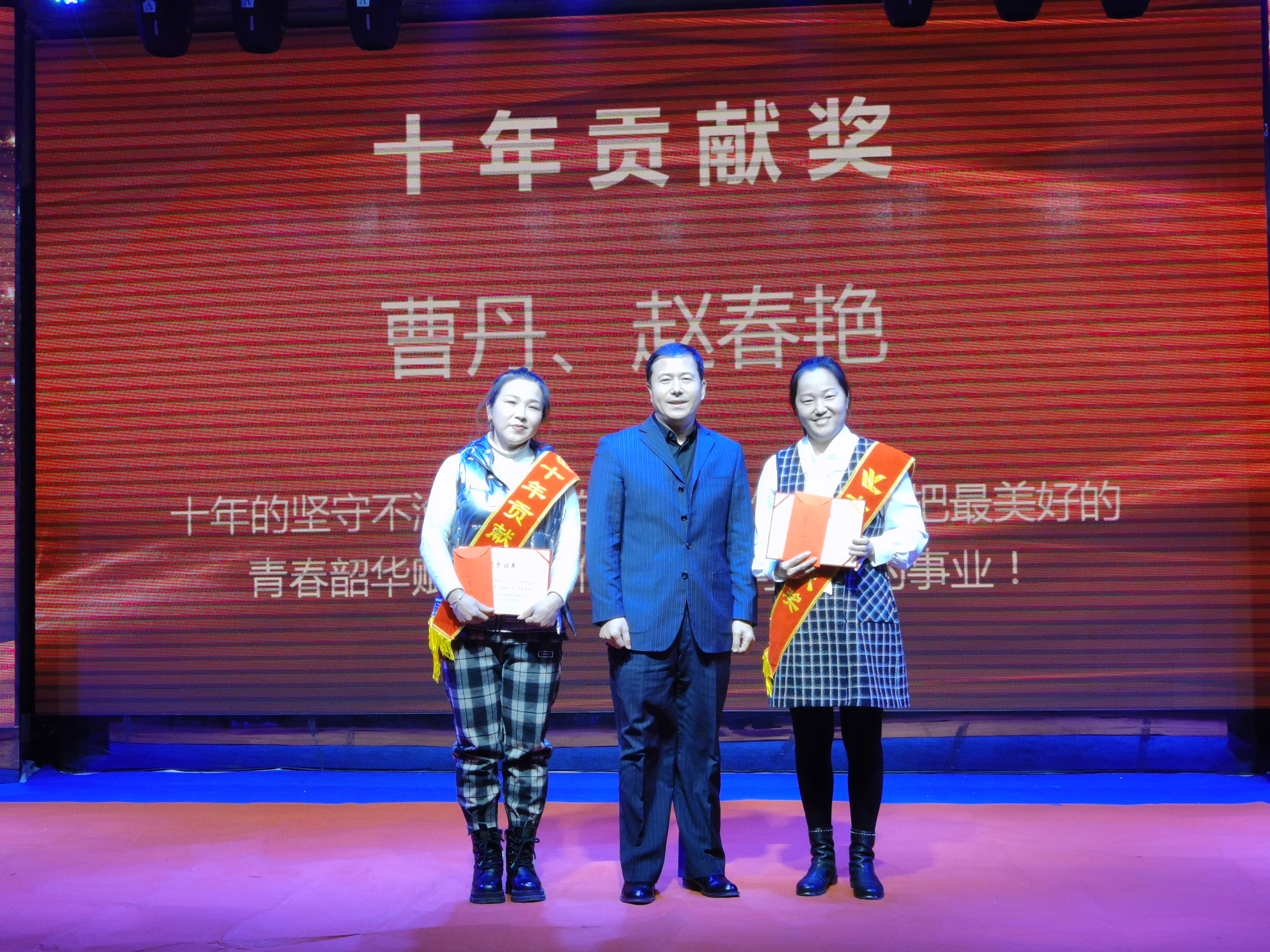 曹丹、趙春燕獲得十年貢獻(xiàn)獎,十年的堅守不渝,十年的默默耕作,他們把最美好的青春韶華賦予了我們?yōu)橹餐瑠^斗的事業(yè),十年如一日他們時刻心系企業(yè)的憂患,與企業(yè)同風(fēng)雨共命運。公司總裁王鐵良為獲獎?wù)?/span>頒獎。