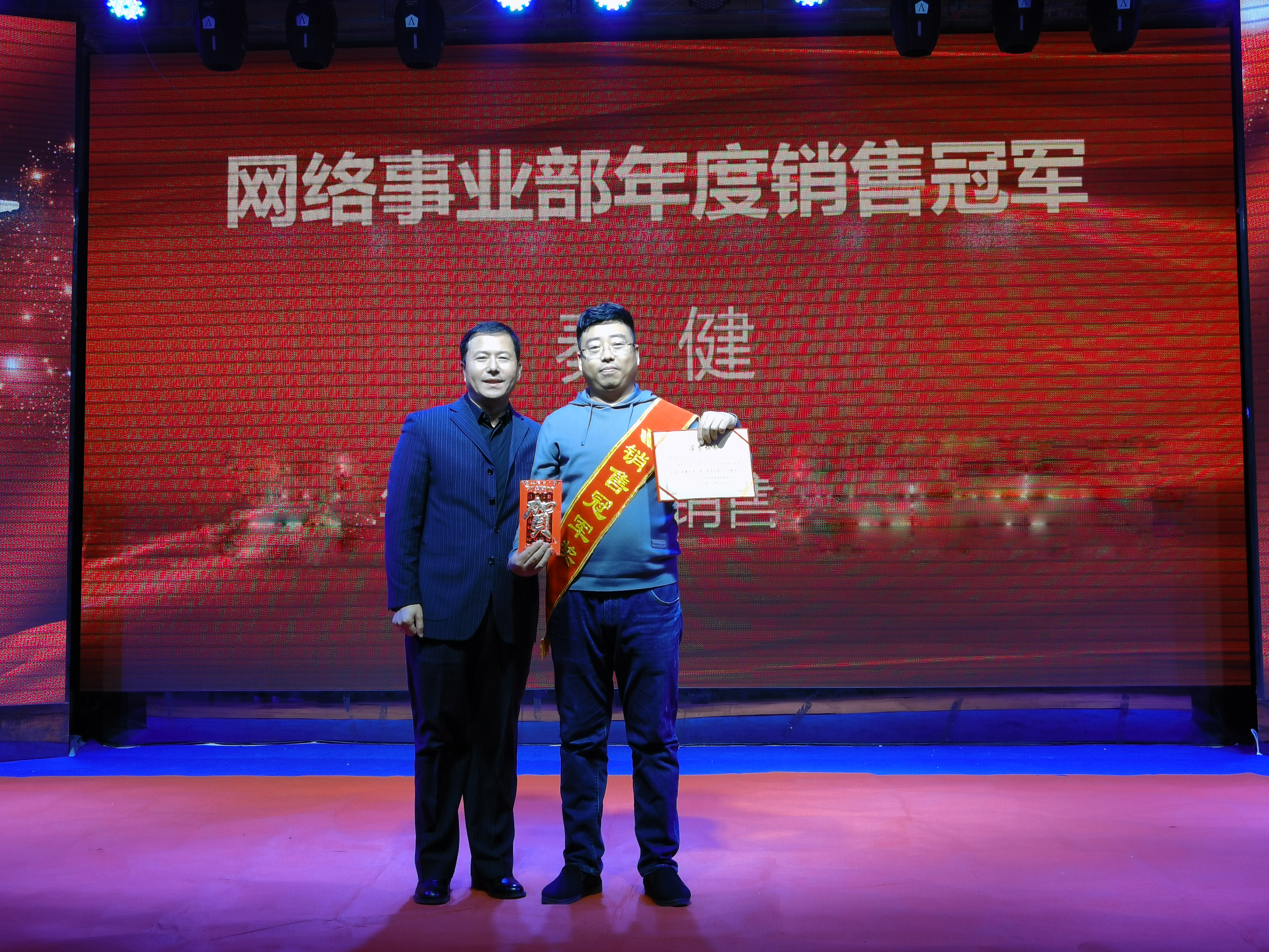 秦健獲得年度銷售冠軍,從業(yè)20年的經(jīng)歷,他身經(jīng)百戰(zhàn)、志存高遠(yuǎn),智商情商雙在線。他是一個不畏艱難的人,在2021年如此艱難的市場環(huán)境下,他把《大客戶戰(zhàn)略》發(fā)揮的淋漓盡致,實現(xiàn)了個人現(xiàn)款銷售業(yè)績的快速增長。公司總裁王鐵良為獲獎?wù)?/span>頒獎。